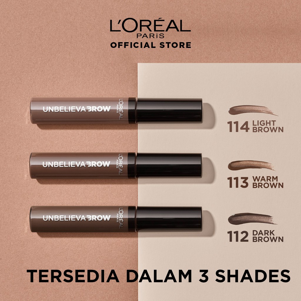 BARU! Brow gel dari L'Oreal Paris yang berfungsi untuk mengisi dan menebalkan alis, dengan formula yang waterproof, smudgeproof, sweatproof, dan transferproof, untuk hasil alis yang tebal dan natural seharian tanpa perlu touch up. Dilengkapi dengan angled brush & spoolie untuk aplikasi yang mudah.